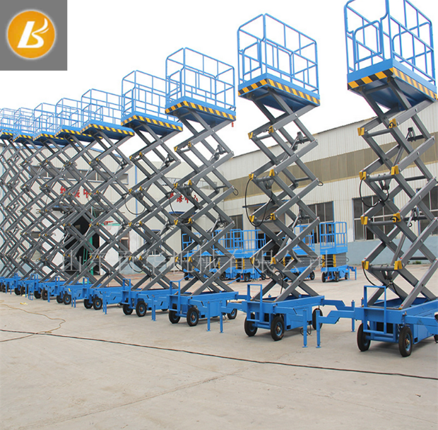 移动式升降机有人工移动式升降机、电动移动式升降机,另备有手压泵,供停电时使用,具有移动灵活、升降平稳、操作方便、载重量大等特点。升降动力分为220V或380V电源,采用国外和国产液压泵站。主要适用于工厂、物业单位、商店装潢、建筑、装饰、场馆馆布置、会议中心等行业。移动式升降机产品种类很多,大致可分为:牵引式,自行式,手推式,铝合金式。