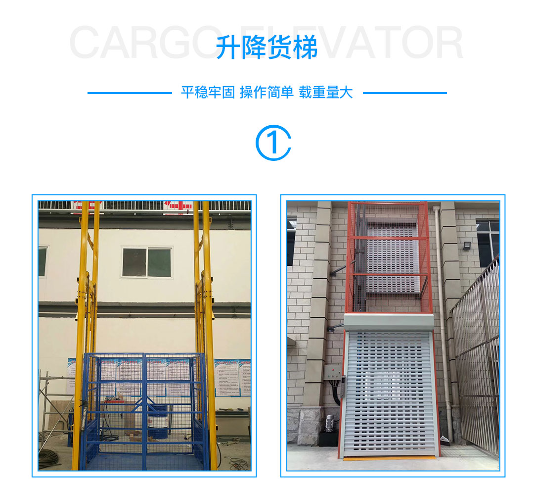 导轨式升降货梯,主要用于楼层间高空货物运输。载重1-150吨,升高高度1-45米.室内、室内外均可安装。导轨式升降货梯采用旁置油缸,运行平稳、噪音低、维修方便、使用寿命较长;停电时,可使用手动应急下降,安全、方便、快捷、实用;地坑深度一般为0-30cm,顶层高度不受限制